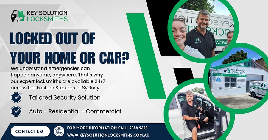 Key Solution Locksmiths (KSL), led by Daniel Frawley, is a family-owned and operated locksmith business based in Maroubra, serving the Eastern Suburbs and Sydney CBD. With over 25 years of experience, KSL provides comprehensive locksmith services for residential, commercial, and automotive needs. As a licensed member of the Master Locksmith Association of Australia, KSL is committed to high-quality products, exceptional customer service, and maintaining the highest industry standards. KSL operates 24/7, offering emergency services with an average response time of 30 minutes or less.